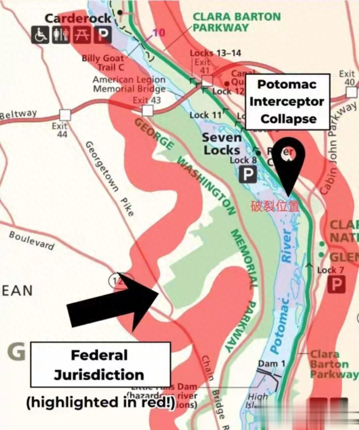 马里兰州污水管道破裂,大量污水汹涌流入首都地区主要饮用水源,这堪称美国史上最大污水泄漏事件之一。